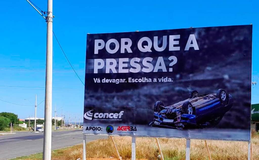 Durante o mês de abril, a Concessionária Estrada do Feijão está promovendo a campanha “Por que a pressa?”, com o intuito de conscientizar os usuários a respeito dos perigos existentes para quem desrespeita os limites de velocidade e as normas de trânsito.