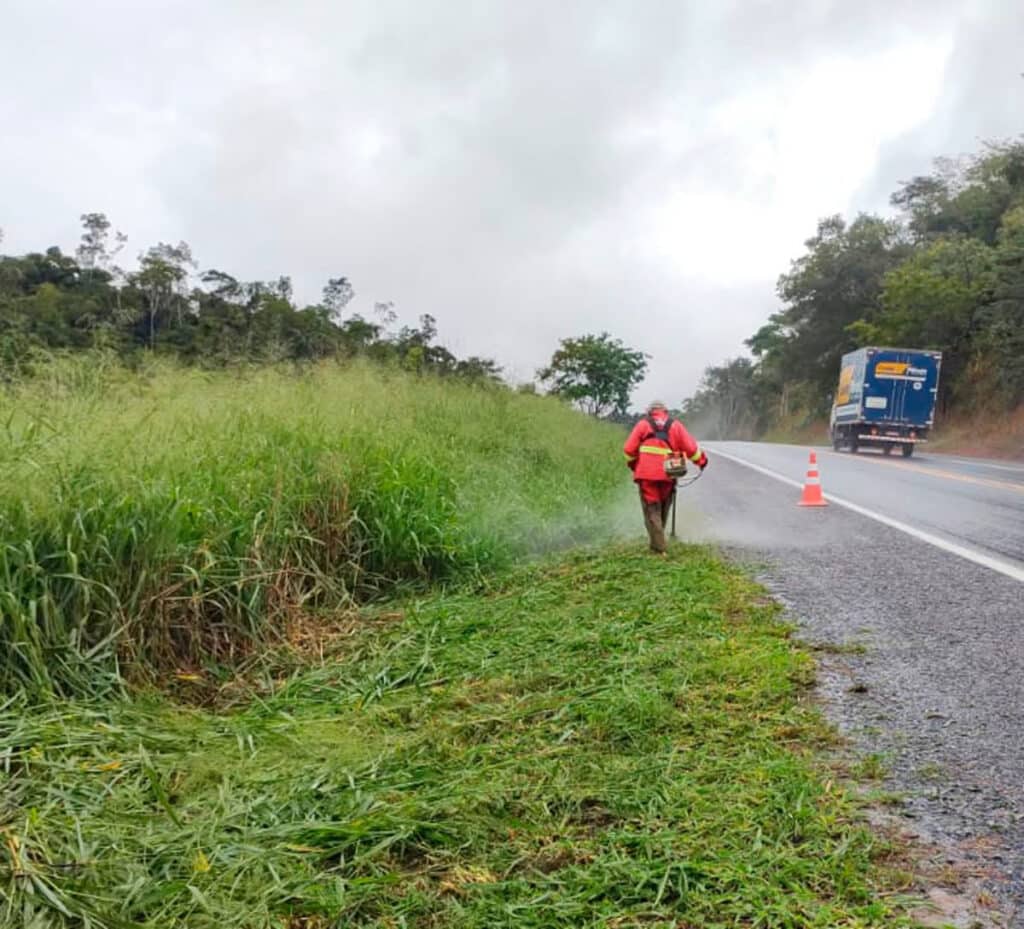 A equipe de conserva da Concessionária Estrada do Feijão a roçagem em curvas localizadas entre o km 167 e o km 175, na região de Mundo Novo. Com o objetivo de garantir a segurança dos motoristas que trafegam pela rodovia, a equipe utilizou roçadeiras intercostais para remover a vegetação que estava crescendo e poderia vir a obstruir a visibilidade dos condutores.