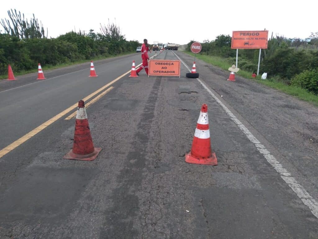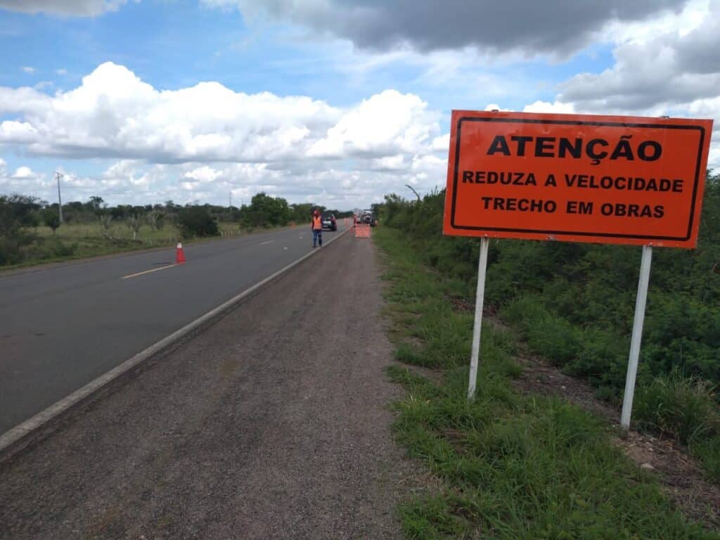É de suma importância a atenção redobrada nos trechos onde há indicação de obras, pois durante todo o processo executivo os colaboradores caminham na pista e, em consequência das atividades de restauração, há material solto na pista diminuindo a aderência entre o veículo e o pavimento.