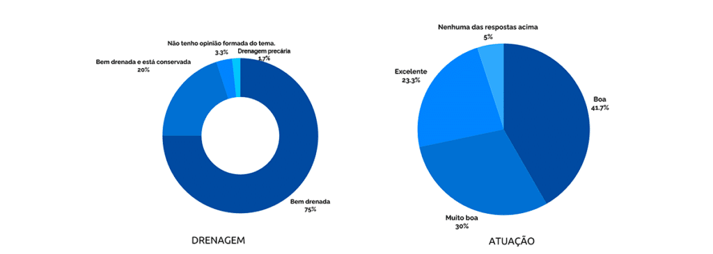 Em relação à drenagem, 75% dos participantes consideram a rodovia bem drenada, enquanto 20% acreditam que está bem drenada e conservada. Por fim, quanto à atuação da CONCEF na rodovia, 41,7% a classificam como boa, 30% como muito boa e 23,3% como excelente.