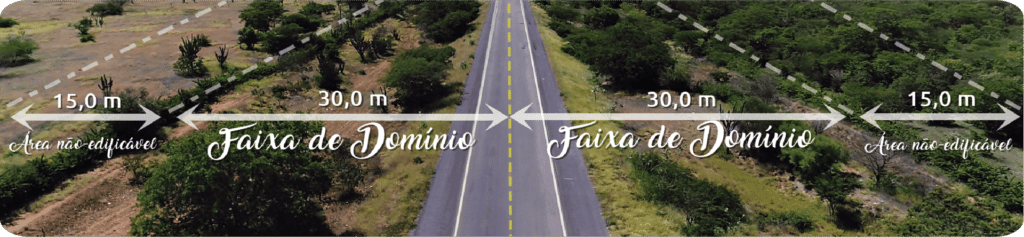 Em alguns casos são constatadas irregularidades em construções e cercas, pois a largura da faixa de domínio das rodovias sob jurisdição da SEINFRA/SIT é definida de acordo com as características técnicas do projeto final de engenharia de cada rodovia, mantendo largura constante e tendo as linhas limites paralelas ao eixo da rodovia, conforme aprovado e estabelecido pelo órgão.